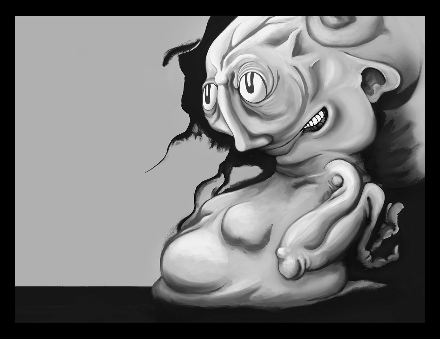 Personal piece "De Projectie Persoon" or "The Projected Person". Charcoal, scanned and digitally coloured in Photoshop and Procreate.